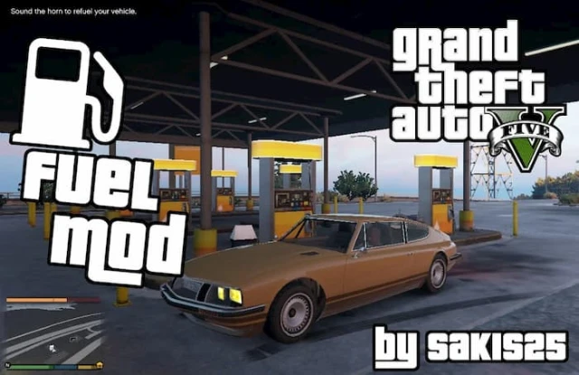 Fuel Script V 0.8 by Sakis25 The first fuel mod for GTA V! Features: Fuel bar above the minimapEngine stops if you run out of fuelTo refill fuel stop the car near a petrol station and sound the hornYou can also refill your car using the jerry can (hold L n