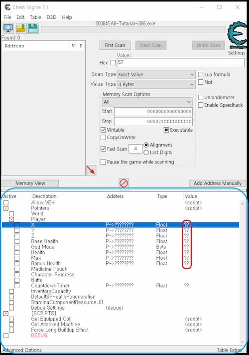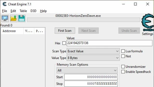 이 치트 테이블 (.CT)을 사용하려면 내부 모드를 실행하지 않고도 게임 내 데이터를 수정할 수 있도록 호라이즌 제로 던과 함께 Cheat Engine (7.1 이상)을 사용해야 합니다.
