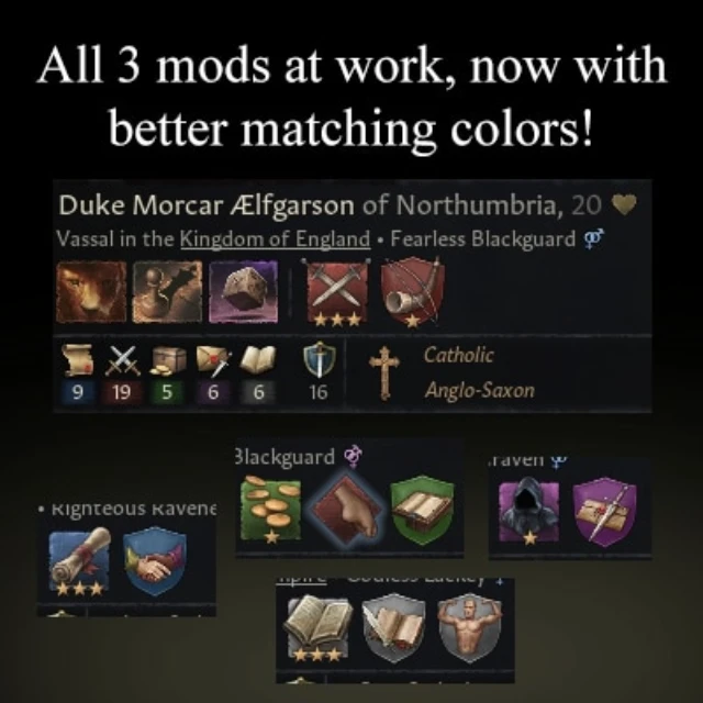 크루세이더 킹즈 2에서처럼 교육 특성 아이콘을 해당 특성에 따라 색상이 지정된 아이콘으로 대체합니다.