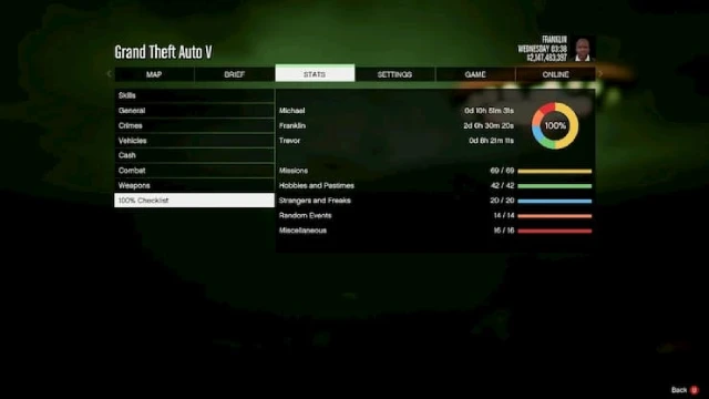 이 세이브 파일은 장갑 쿠루마(Kuruma)와 UFO로 칠리아드 산 꼭대기에서 프랭클린으로 시작합니다.