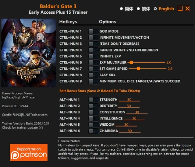 Baldur's Gate 3 Trainer | FLiNG Trainer - PC Game Cheats and Mods