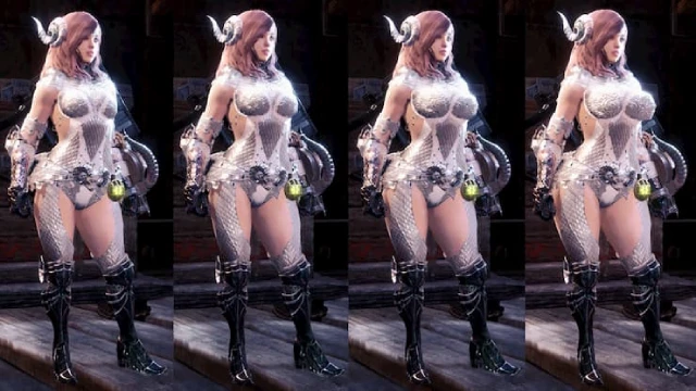 Customized Kulve Taroth Armor. Slightly more revealing, with high heels, better color customization, and less fur. Booty and bust size options. Replaces both Kulve Taroth armors. Alpha has black lace,