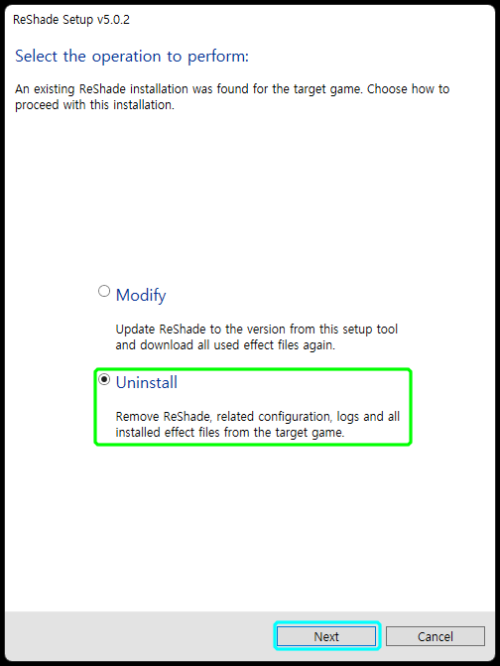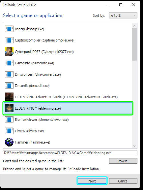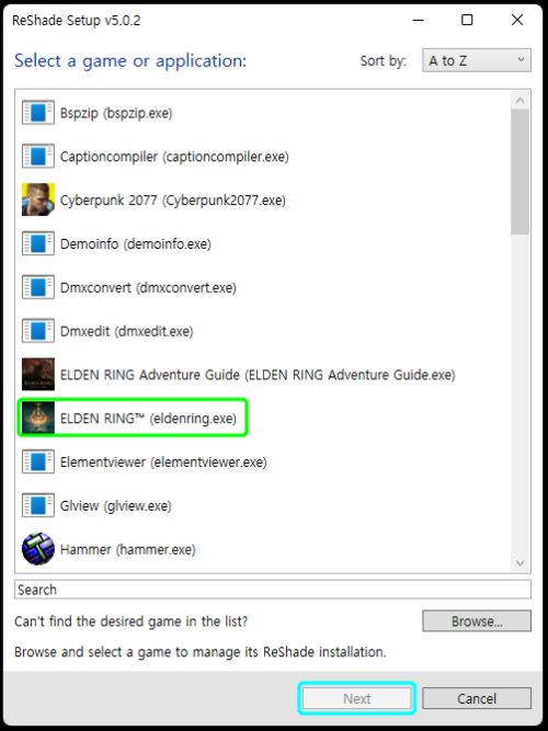 1. 리쉐이드 설치 프로그램을 실행하고 게임을 선택합니다.