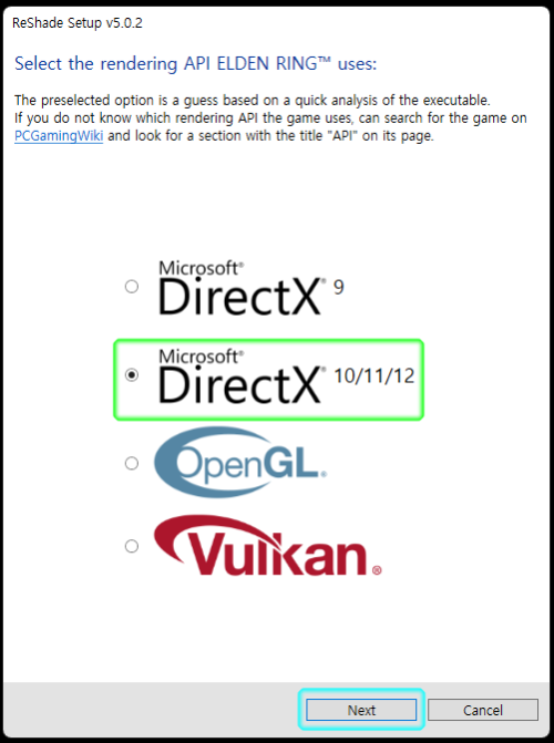 2. DirectX 10/11/12를 선택합니다.