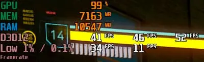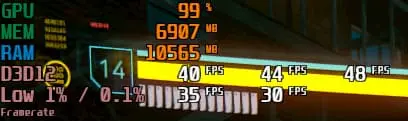 이 모드를 사용하지 않았을 때평균 44 프레임 정도 나왔습니다. 저는 테스트 시간이 길지는 않습니다. 사용하실 때 충분한 시간을 들여 테스트해보시길 권장합니다.