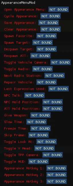 5. "Bindings" 탭에서 사용을 원하는 AppearanceMenuMod 기능에 키 바인딩을 합니다.