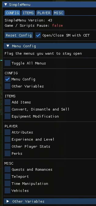 SimpleMenu - An In-Game UI including Hotkeys