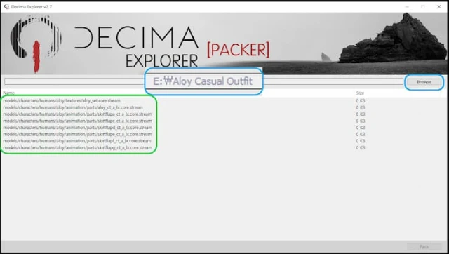 4. "Browse"를 클릭하고 "Casual Outfit for Aloy"라는 압축을 푼 폴더를 선택합니다.