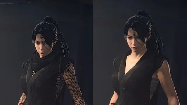 이 모드는 닌자 복(시노비 로브 여성)에서 망사와 스카프를 제거하거나 보이지 않게 합니다.