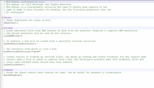 참고 : 일부 모드에는 자체 modengine.ini를 가지고 있어, 모드를 작동하기 위한 특수한 세팅이 필요합니다. 이러한 경우, 지시 사항을 따르고 여기에 나열된 지시 사항에 대해 modengine.ini 파일을 사용하십시오.