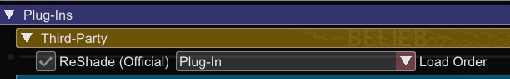 Plug-Ins -> Third-Party로 이동하여 ReShade(Official) 네모 칸에 체크합니다.