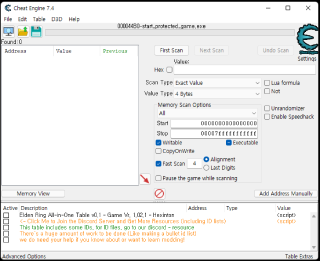 0. 치트 테이블을 모드 페이지에서 다운로드합니다.